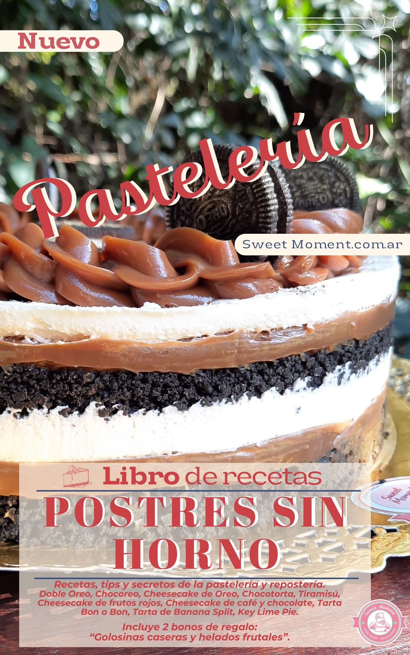 Mis recetas paso a paso, tips y secretos de la repostería para logar los Postres sin horno deliciosos y sabrosos de Doble oreo, Chocoreo, Cheesecake de Oreo, Chocotorta, Tiramisú, Cheesecake frutos rojos, Cheesecake café y chocolate, Tarta Bon o Bon, Tarta de banana split y Key Lime Pie.